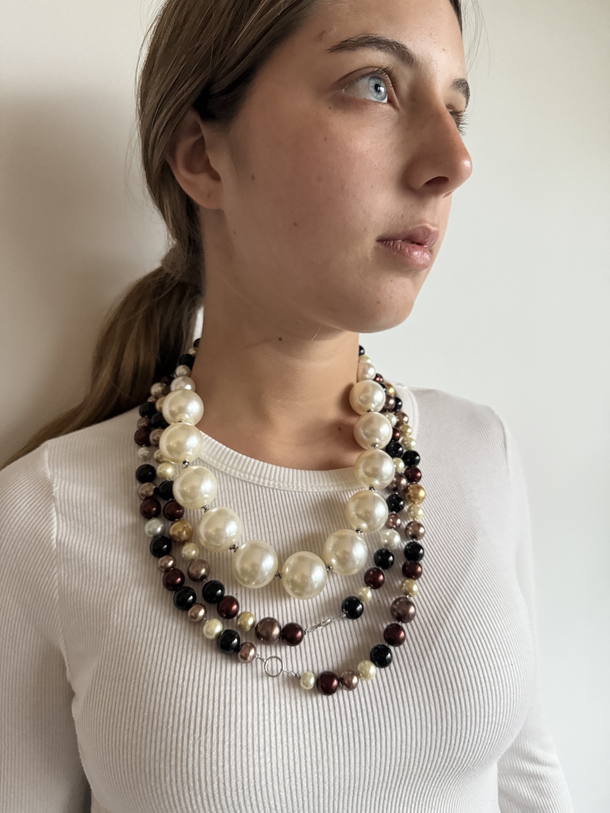 Collar X Large de cuentas imitacion perla en tonos tierra , negro y perlado